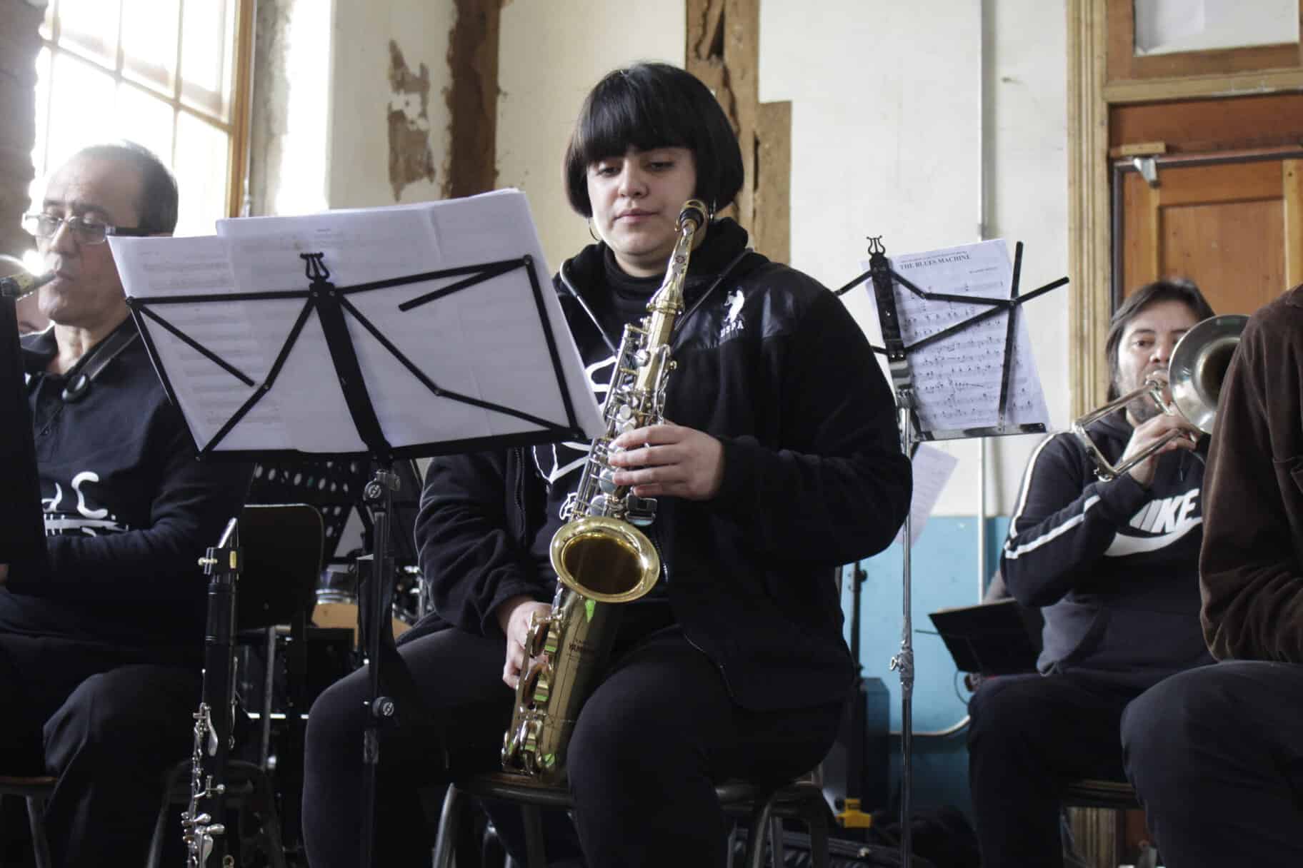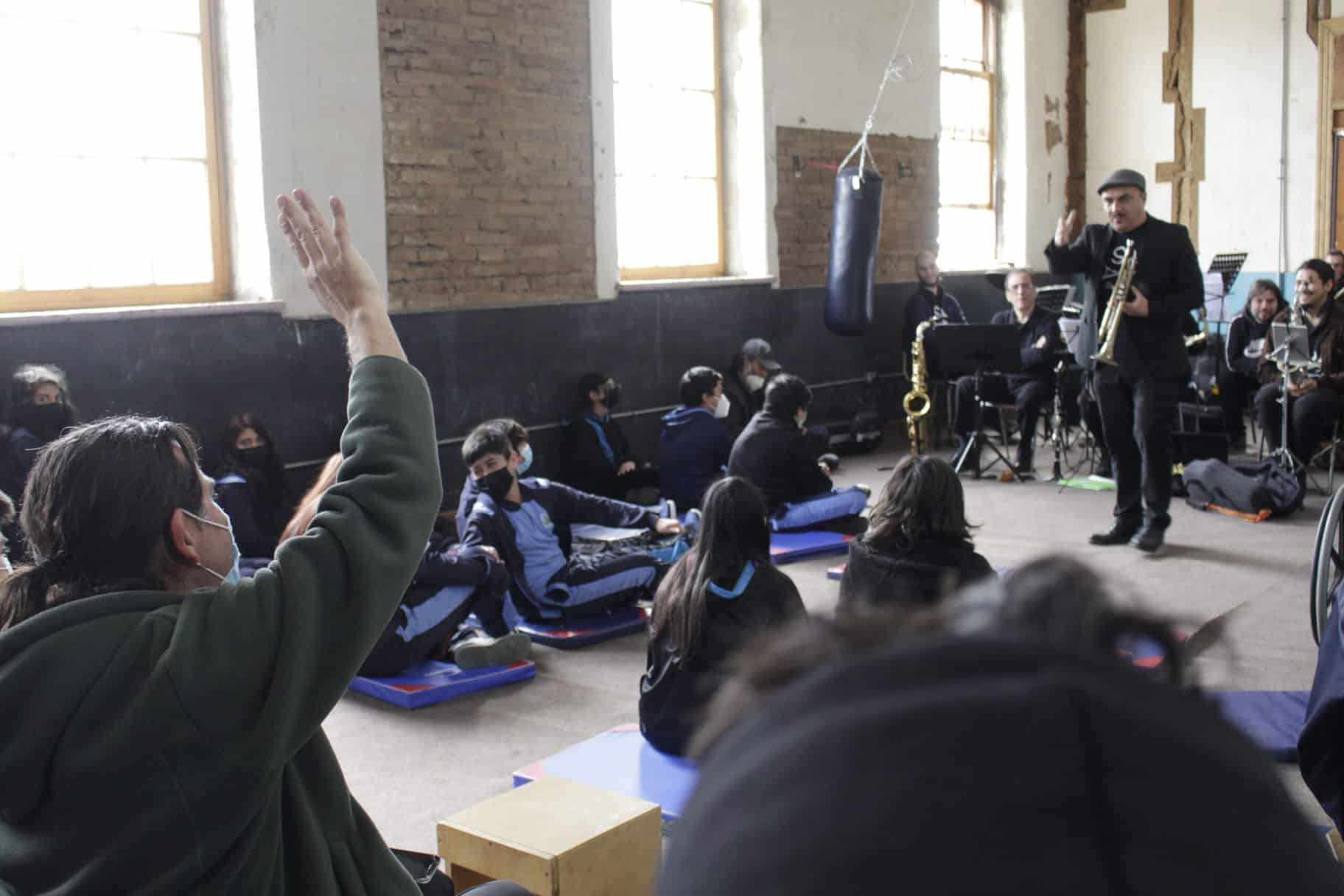 El pasado viernes 24 de junio se presentó la orquesta Situación de Calle Big Band en las dependencias del Espacio Comunitario Santa Ana (ECSA). A la actividad asistieron estudiantes de sexto y séptimo básico de la Escuela República de El Salvador. Establecimiento en el que se está desarrollando un taller de música en colaboración con la organización. Durante la jornada se presentaron los diferentes instrumentos que componían la orquesta, además de canciones que resaltan las particularidades de cada uno.