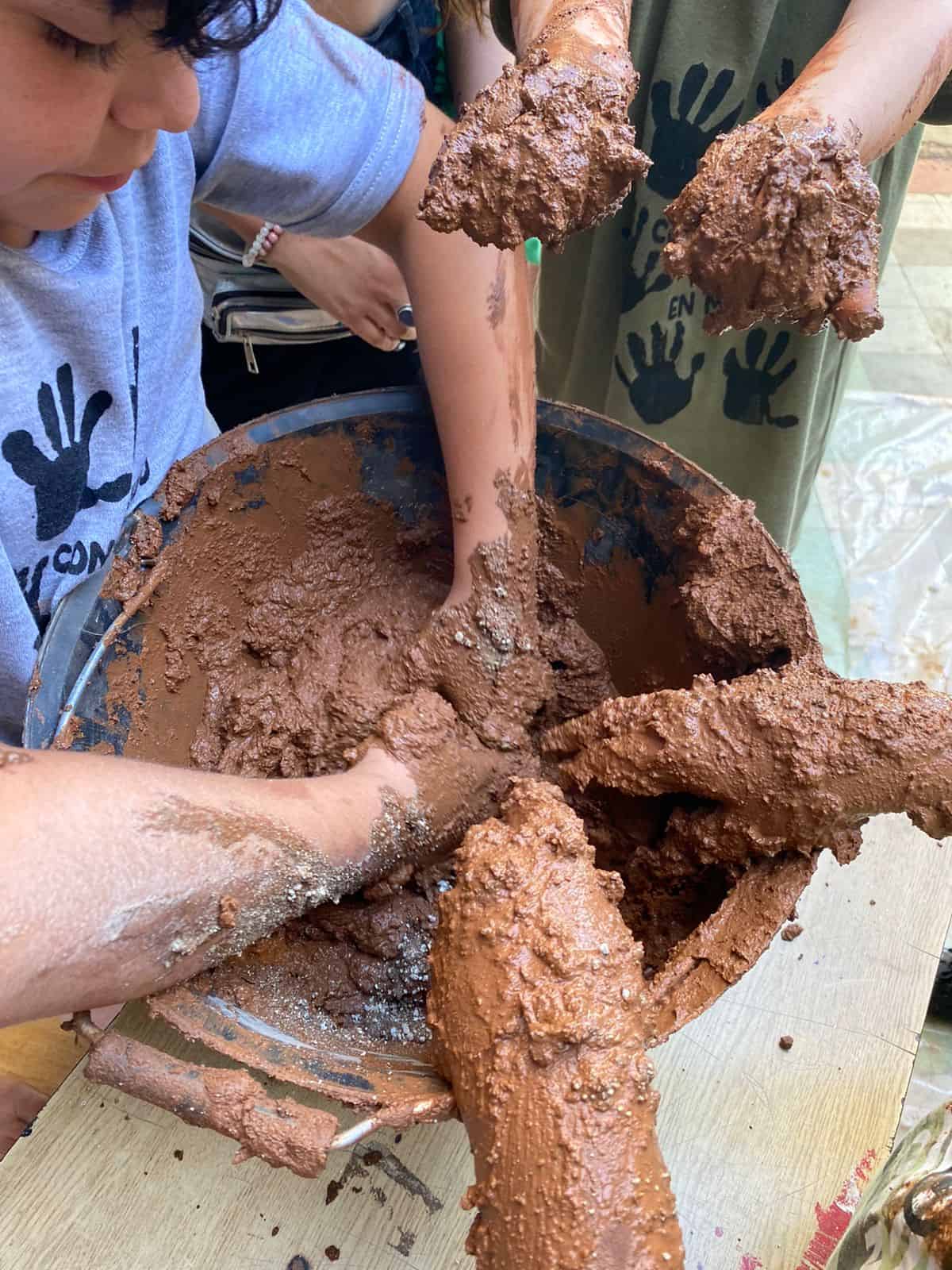 La actividad constó de dos partes, “la primera fue un taller de memoria que estuvo a cargo mío, donde conté -tipo cuento- la historia de la capilla, del cerro, de las organizaciones territoriales, etc. De esta primera parte salió un dibujo/diseño que se implementó en la parte práctica, a través de una piscina de barro, donde los niños y adolescentes hicieron realidad el diseño, trabajando con una técnica que se llama esgrafiado”, mencionó Carolina Cabello, socióloga de la Universidad de Valparaíso y magíster en Historia en la PUCV.