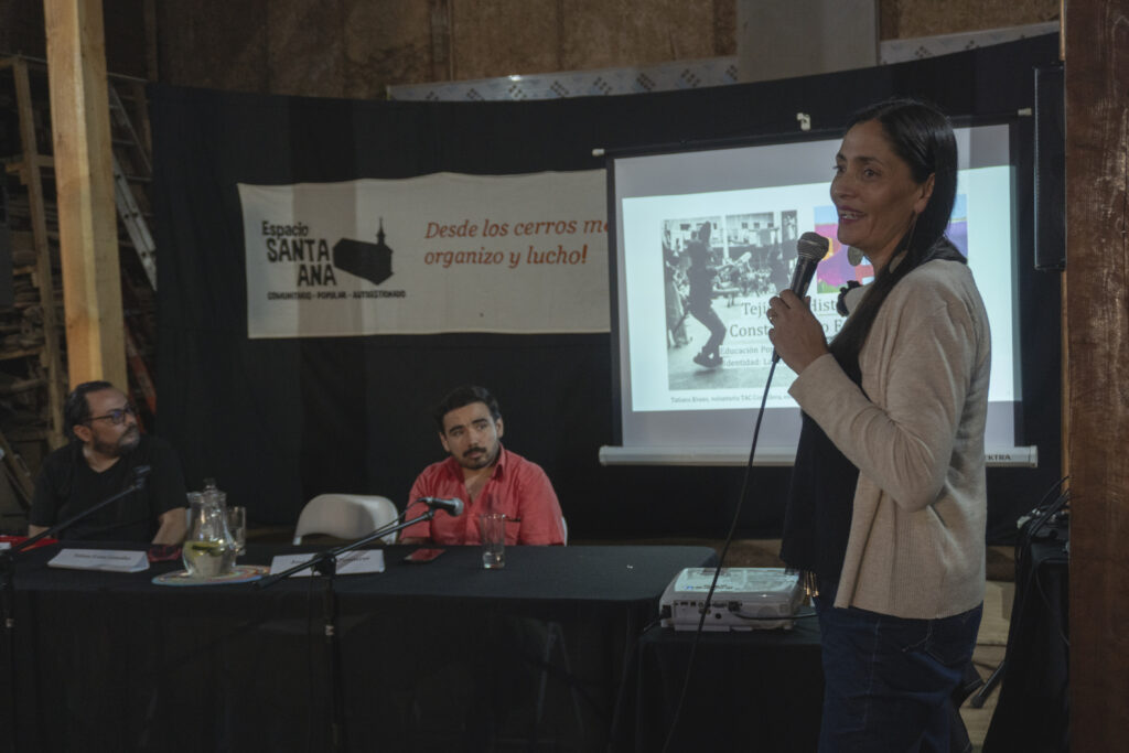 La jornada prosiguó con “Cordillera tiene Memoria: Historias de un cerro que se organiza”, el conversatorio de rescate de la Memoria Local que abordó las narraciones sobre lugares icónicos del cerro como el Taller de Acción Comunitaria TAC Cordillera, Congregación Redentoristas, ExCapilla Santa Ana y Mitos y Leyendas locales.